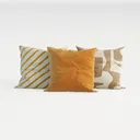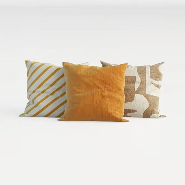 A 3D model of a pillow set, featuring various colors and geometric patterns and a modern minimalist aesthetic. It has high-detail 3D model and is suitable for home decor, sofa or bed.