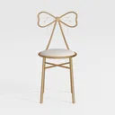Inspired by classic, elegant bow designs, this chair features a sleek gold metal frame with a soft white upholstered seat. The polished metal exudes sophistication, while the plush cushion offers comfortable support. Ideal for modern-luxury dining or living spaces, it pairs beautifully with marble or wooden surfaces, adding romance and refinement. Its stable base ensures durability, making it both stylish and practical.