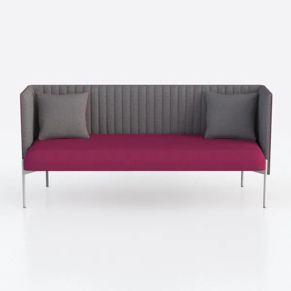 This modern sofa features a vibrant pink seat, textured grey back, and sleek metal legs, ideal for living rooms or lounge areas, with 32922 polygons.