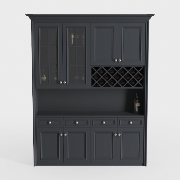 The highlight lies in the integrated wine rack at its center, with perfectly angled, evenly spaced slots that cradle bottles securely, balancing display and practicality. This piece thrives in both cozy dining nooks and elegant home bars, pairing effortlessly with rustic wooden dining tables and vintage pendant lights, or complementing sleek, minimalist kitchens with marble countertops and metal accents. Whether hosting friends or savoring quiet evenings, it blends style and function, making it a versatile centerpiece for spaces that honor tradition and modern living.