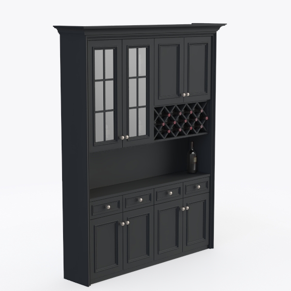 Inspired by the timeless allure of traditional joinery, this cabinet marries classic design elements with modern utility. Its deep, matte midnight blue finish radiates calm sophistication, while the smooth, sanded wood surface feels cool and refined to the touch, with subtle grain patterns peeking through that add organic warmth. The structured silhouette features tall, glass-fronted upper cabinets—framed by slim, polished brass handles—their transparent panes catching light to showcase stored items, while the solid-panel lower doors and small, pull-out drawers (each with matching hardware) offer discreet storage for tableware or bar tools.