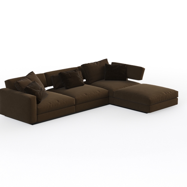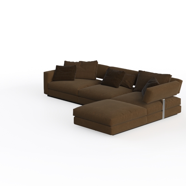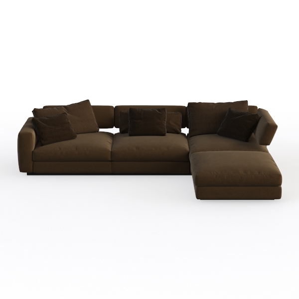 Introducing a luxurious sectional sofa that effortlessly blends comfort and style. Inspired by contemporary design trends, this piece features clean lines and a sophisticated silhouette, making it a statement in any living space. The rich brown upholstery exudes warmth, while its soft, velvety texture invites relaxation and leisure, offering a tactile experience that enhances any room's ambiance.