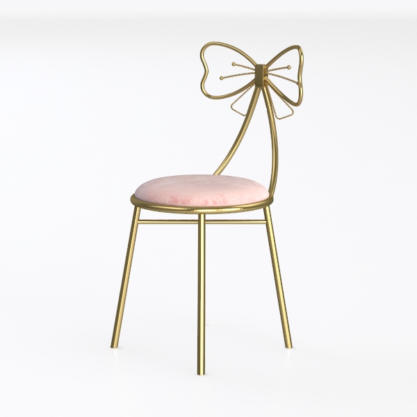 Moderna sedia da toeletta in velluto rosa – elegante poltrona con papillon in ferro e sgabello da salotto per camera da letto delle ragazze trucco vanità sala da pranzo & arredamento chic
