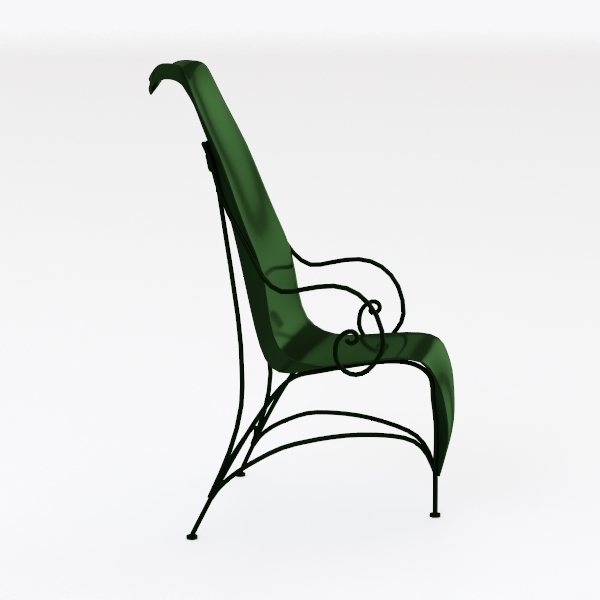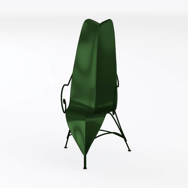 Crafted with inspiration drawn from the organic fluidity of natural forms, this armchair embodies a serene fusion of botanical elegance and contemporary design. The deep, velvety emerald upholstery, with its soft, matte finish, feels luxuriously smooth to the touch, inviting prolonged contact and promising a plush, supportive seat. Its high, contoured backrest, tapering gently to a point, and the curved armrests—adorned with delicate spiral details—create a cocoon-like silhouette, wrapping around the body to evoke a sense of calm and enclosure.