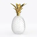 A 3D model of a Pineapple-Shaped Decorative Ornament, featuring a clear glass body with diamond-cut patterns and golden leaf top, and a modern, luxurious, elegant aesthetic. It has a highly detailed, low-poly design and is suitable for home decor and tabletop ornament.