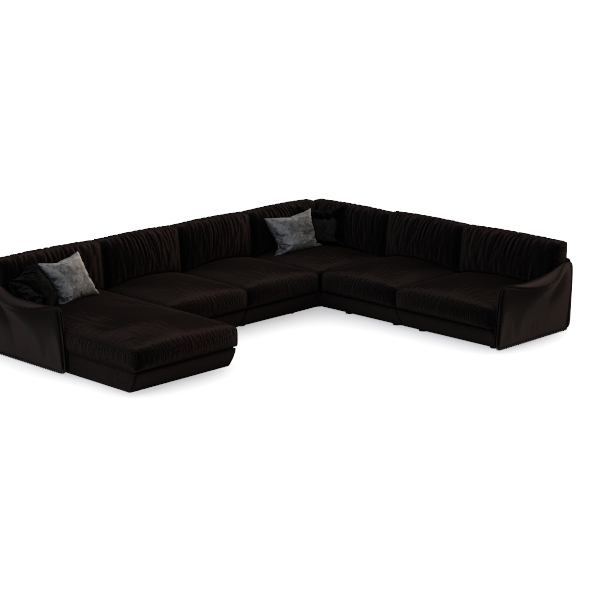 This elegantly designed sectional sofa draws inspiration from modern minimalist aesthetics, perfectly blending functionality with a chic touch. The inviting dark upholstery offers a luxurious feel, while its soft texture invites you to sink in for a cozy evening. The sleek lines and gentle curves create a visually striking silhouette, making it an eye-catching centerpiece in any living space.
