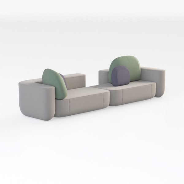 The texture is both smooth and inviting, promising a comfortable seating experience. Each cushion features a unique shape, encouraging creativity in arrangement and allowing for personal expression. The larger, rounded backrests contrast beautifully with the sleek base, offering a soft embrace that invites relaxation.