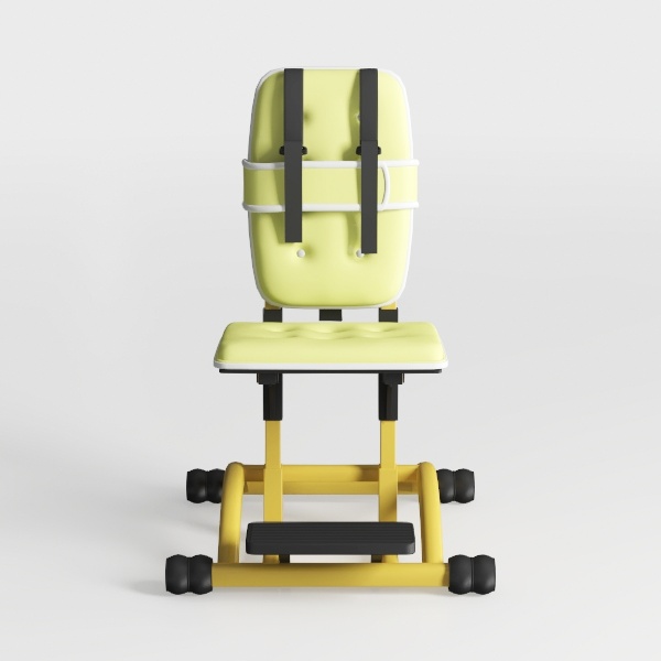 Designed with a blend of playful functionality and minimalist charm, this chair draws inspiration from the need to merge safety, comfort, and visual appeal in everyday family spaces. Its seat and backrest feature a soft, buttery-soft upholstery in a vibrant lemon-yellow hue, offering a gentle, hug-like tactile experience that feels both inviting and durable. The white accent lines along the backrest create a subtle contrast, while the sturdy black straps add both structural support and a modern edge, ensuring stability during use.