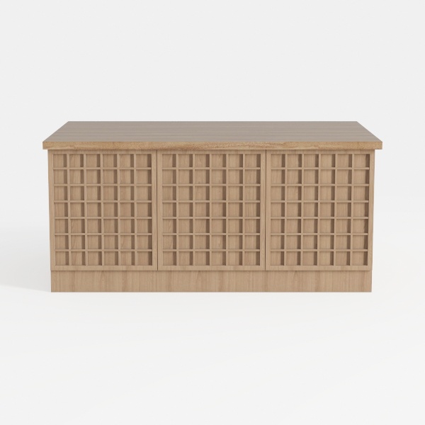 This piece merges traditional lattice design with modern simplicity, drawing inspiration from classic Asian wooden furniture’s geometric patterns, reimagined for contemporary living. Crafted from light oak with soft, natural wood grain, its surface feels smooth and warm to the touch, with subtle variations in tone that add depth without overwhelming. The rectangular form is balanced by three evenly spaced grid-panel doors, each featuring a precise, uniform latticework—this open yet structured pattern allows air circulation while maintaining order, making it both visually engaging and functional.