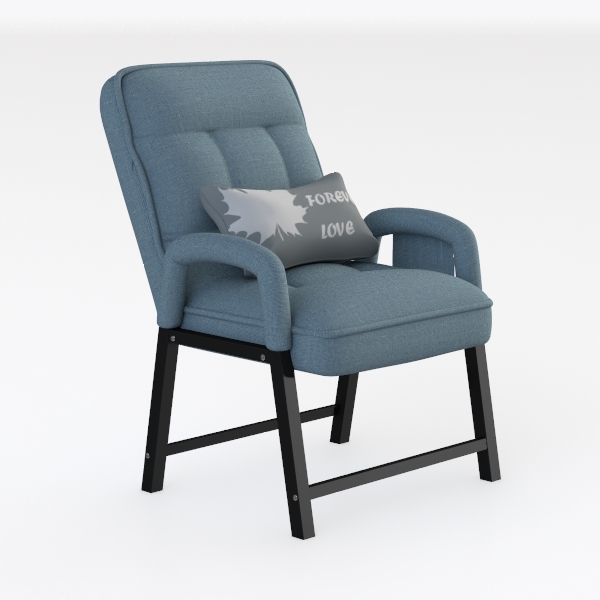 This armchair embodies a blend of Scandinavian simplicity and modern comfort, drawing inspiration from the clean lines and functional aesthetics of Nordic design. Its soft, textured upholstery in a muted blue hue feels plush yet breathable to the touch, with subtle tufted details on the backrest adding gentle visual interest without overwhelming the overall minimalism. The sleek black legs, with their slender profile, contrast elegantly against the chair’s warm tone, creating a balanced, grounded presence.