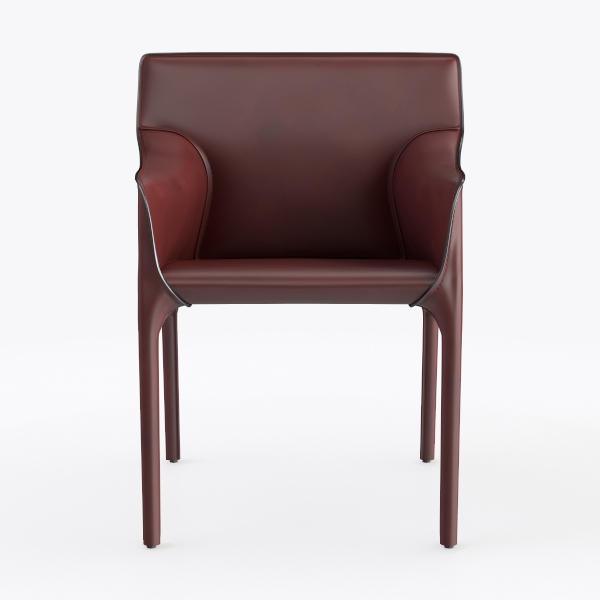 This chair draws inspiration from the harmonious blend of organic minimalism and architectural precision, capturing the essence of modern design that prioritizes both aesthetics and functionality. Crafted with high-quality, smooth leather, its rich chestnut hue radiates warmth and depth, catching light subtly to create a soft, inviting glow. The surface feels cool to the touch yet yields gently, offering immediate comfort as it conforms to the body’s natural curves.
