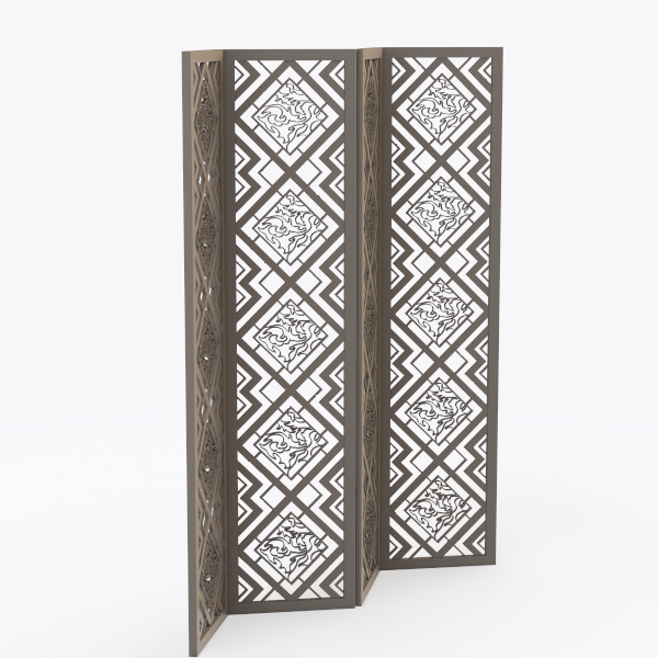 Crafted with meticulous attention to detail, this room divider draws inspiration from the geometric precision of traditional Art Deco design, blending symmetry and intricate patterns to create a piece that feels both timeless and contemporary. Its surface features a harmonious interplay of light and shadow, achieved through delicate laser-cut motifs that dance across the structure. The material—likely a polished, cool-toned metal—boasts a smooth, slightly textured touch, while the openwork design imparts a sense of lightness, avoiding the heaviness often associated with traditional dividers.