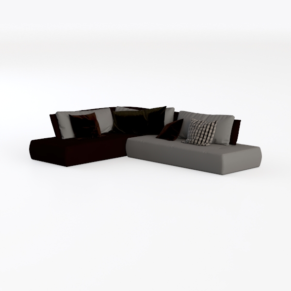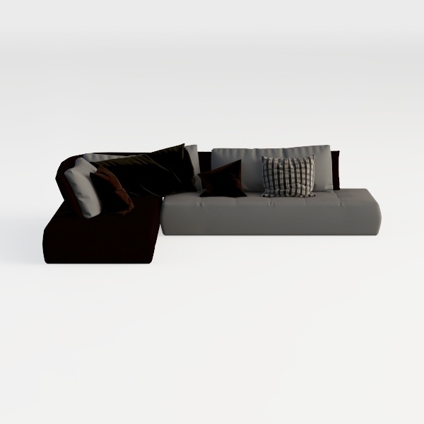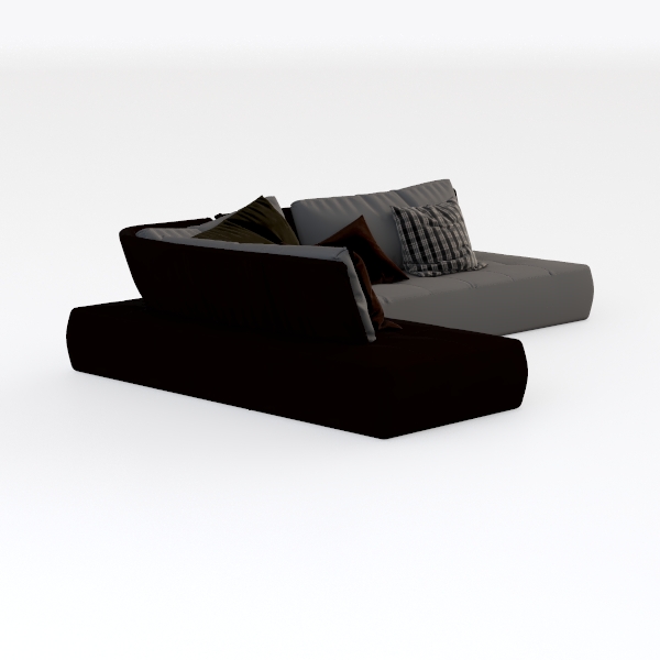 Introducing a unique sectional sofa that perfectly blends modern elegance with inviting comfort. The design inspiration draws from contemporary minimalist aesthetics, incorporating a sleek silhouette that complements any living space. Its combination of deep grays and rich blacks offers a striking visual appeal, while the various textures create a tactile experience that encourages relaxation.