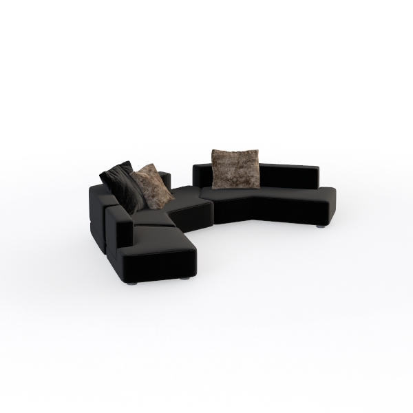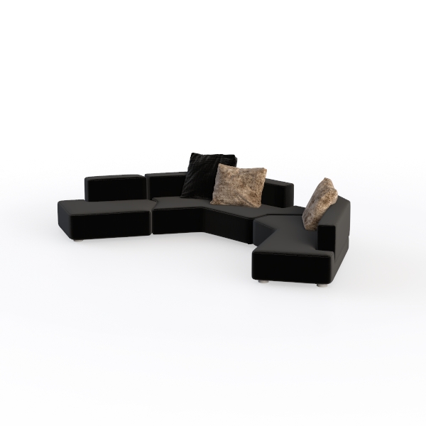 This contemporary sectional sofa embodies a sleek and modern aesthetic, drawing inspiration from minimalist design principles. Its rich black upholstery offers a striking contrast, while the combination of soft textures and geometric lines creates an inviting yet sophisticated vibe.