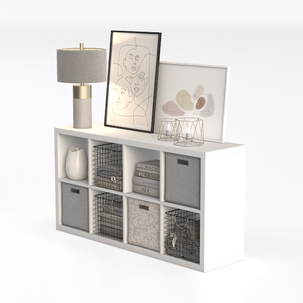 This versatile storage unit draws inspiration from the harmony of minimalist design and practical living, blending clean lines with organic elements to create a space that feels both intentional and inviting. Its sleek, matte white surface exudes a sense of calm, while the geometric grid of open and closed compartments balances structure with flexibility.