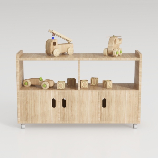 Perfect for a child’s room, this piece harmonizes with soft textiles like knit rugs or pastel wall art, enhancing the room’s warmth. It’s a versatile addition, with open shelves ideal for displaying favorite wooden toys (think the included toy cars and lettered blocks) and closed cabinets keeping mess out of sight. By merging aesthetic appeal with practical storage, it transforms a chaotic play area into a curated, joyful space where both children and parents can enjoy its blend of beauty and utility.
