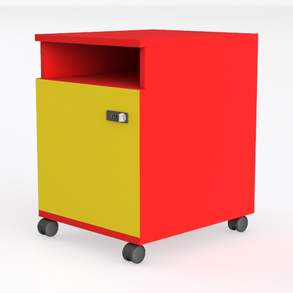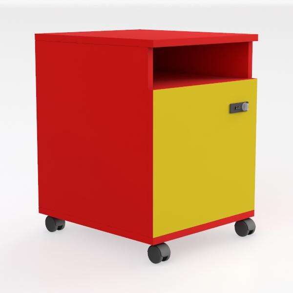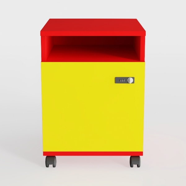 Practicality meets style: the mobile design, with four swivel casters, allows easy rearrangement, while a small lockable compartment on the front keeps essentials like laptops or personal items secure. The open top offers a handy spot for decorative objects or a potted succulent, ensuring both utility and flair.