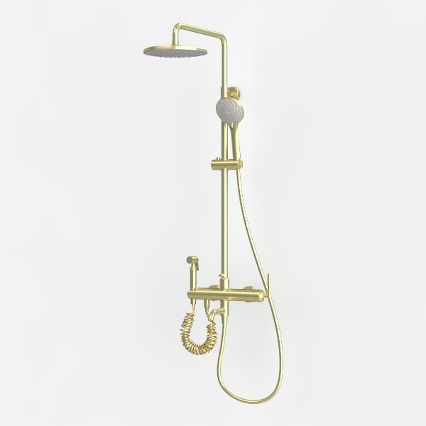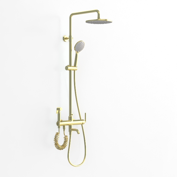 Rain Shower System Brushed Gold Button Shower Combo Set Wall Mounted Bathroom Shower Faucet Set with Shower Head, Handheld Shower, Tub Spout