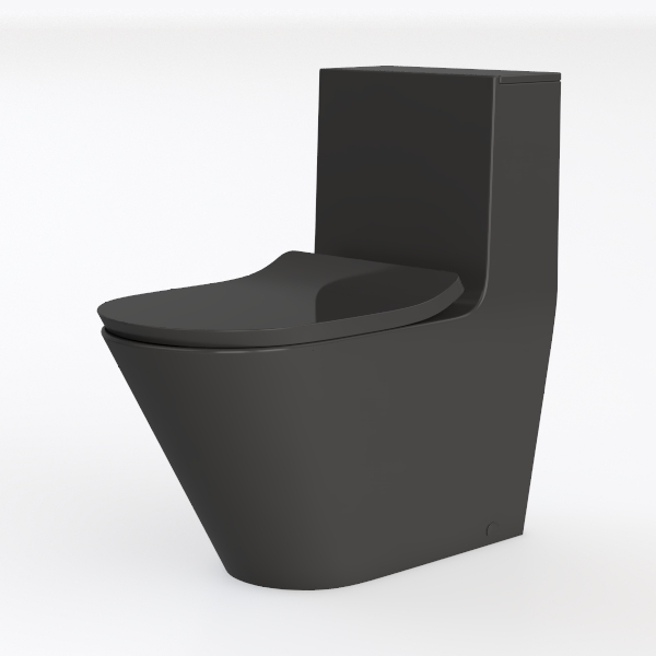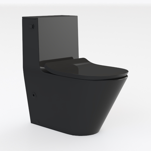 Deer Valley Compact One-Piece Toilet for Small Bathrooms, Modern Toilet with Powerful Dual Flush 0.8/1.28 GPF, Soft-Close Seat, 12" Rough-In, High-Efficiency, Space-Saving, Black, F52813PLUS-B