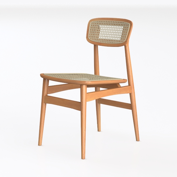 Functionally, the chair prioritizes comfort: the sloped seat and backrest follow the body’s natural curve, while the woven surface offers breathability, keeping it cool during long meals or gatherings. Its balanced weight and sturdy structure make it easy to move, ensuring both durability and practicality for daily use.