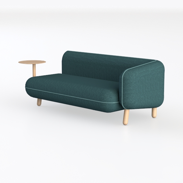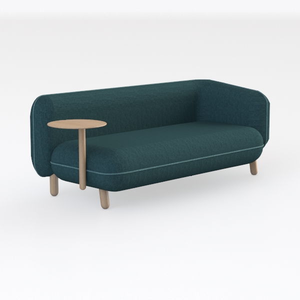 Inspired by modern minimalist design, this exquisite seating piece brings a touch of elegance and comfort to any living space. The rich, deep teal fabric offers a soft texture that invites relaxation, while the sleek lines and gentle curves enhance its visual appeal. The light wood accents on the legs and attached side table create a harmonious contrast, adding warmth and a natural element.