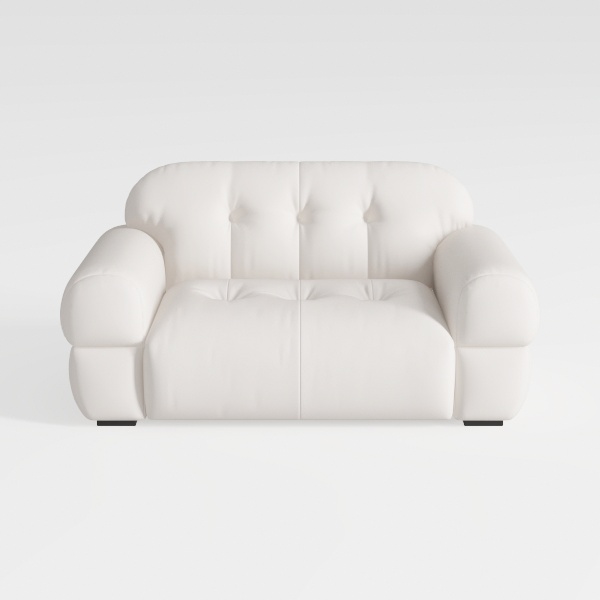 This elegant loveseat embodies a blend of modern aesthetics and timeless comfort, drawing inspiration from Scandinavian design principles. Its soft, plush upholstery invites you to sink in, providing a luxurious touch that's both visually appealing and inviting to the senses. The rounded curves and tufted detailing create a sense of warmth, making it a perfect centerpiece for a cozy living space.