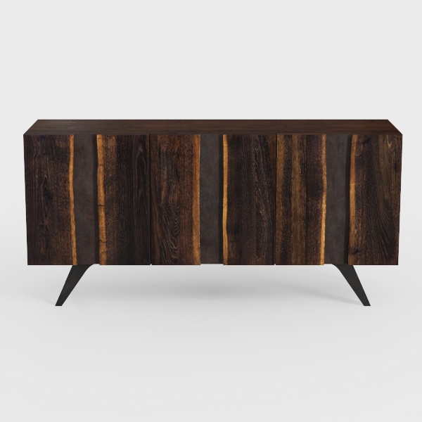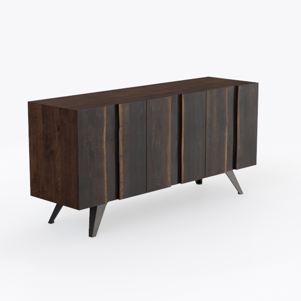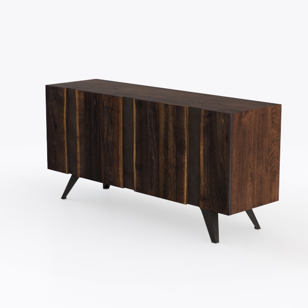 Inspired by natural wood grain and industrial minimalism, this cabinet boasts a warm, textured surface with rich brown hues and subtle golden streaks. Its sleek black metal legs add contrast, making it ideal for modern industrial or Scandinavian living rooms, pairing beautifully with marble accents and soft textiles. Spacious storage with smooth-closing doors ensures both style and functionality.