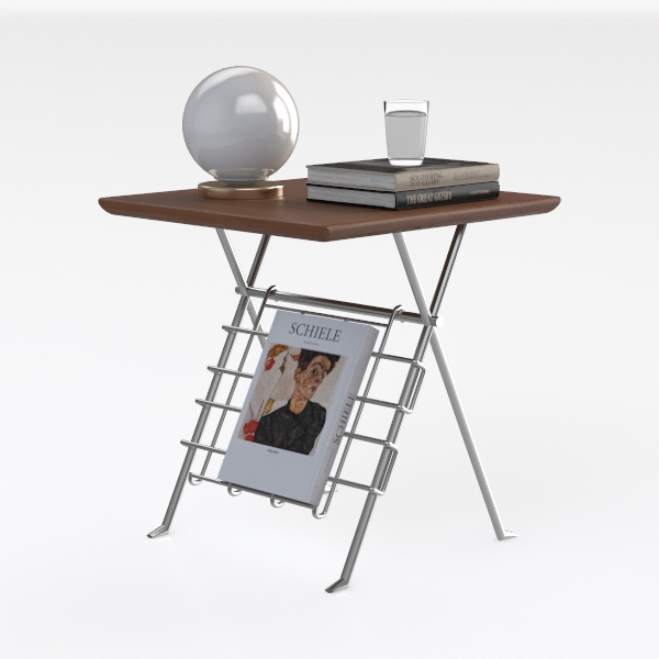 Inspired by mid-century modern minimalism, this side table blends warm wooden top with sleek metal legs. Its smooth grain contrasts with cool metallic sheen, offering a modern, inviting vibe. Ideal for a cozy reading nook or minimalist living room, pair with marble coasters and small plants. Spacious top holds drinks/books, while a built-in rack adds practicality.