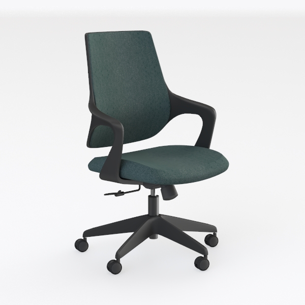Crafted with minimalist architecture in mind, this ergonomic chair blends soft teal fabric with sleek black frames. The textured upholstery offers gentle touch and breathability, while angular armrests and a five-point base add modern edge. Ideal for a contemporary home office, pairing beautifully with wooden desks and metallic lamps. Smooth-rolling swivel and height-adjustable design ensure all-day comfort and easy mobility.