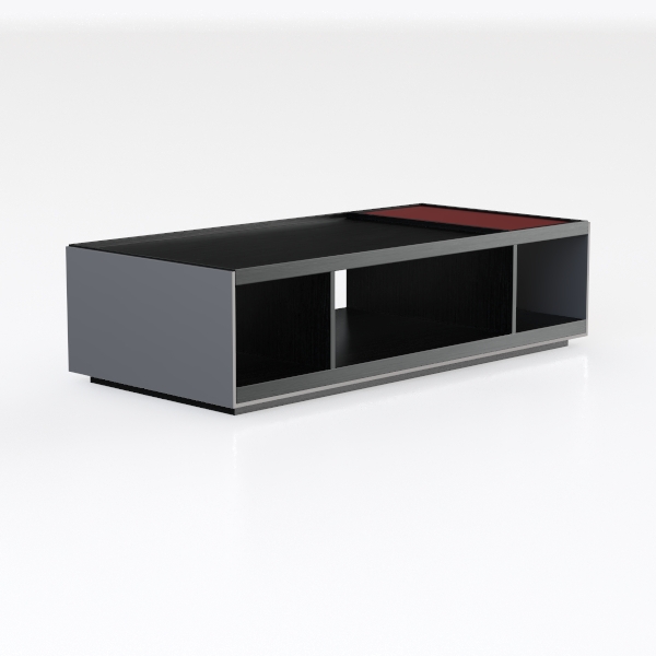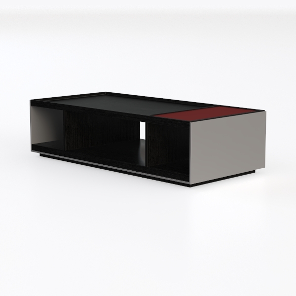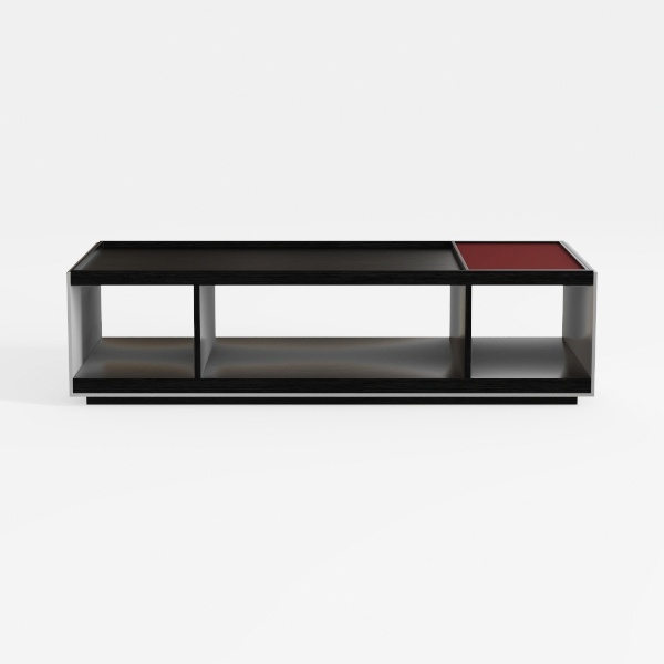 Inspired by contemporary minimalism, this piece blends geometric precision with bold color contrast. Its sleek, polished surfaces and clean lines create a refined, uncluttered look, while the deep red accent adds a striking focal point. Perfect for modern living rooms, it pairs beautifully with marble or glass tops and metallic lamp bases, enhancing a sophisticated yet warm atmosphere. Spacious lower shelves offer practical storage for decor or daily essentials, balancing aesthetics and utility seamlessly.