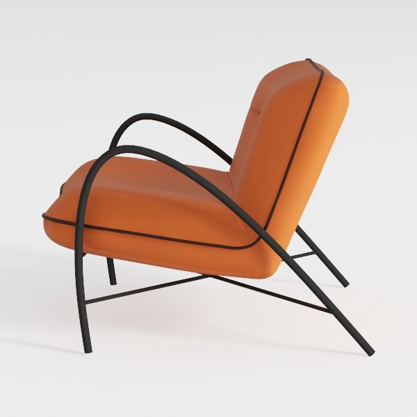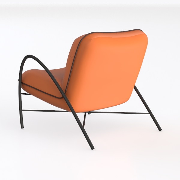 The star of the chair is its upholstery: a rich, terracotta-orange material that exudes tactile luxury—sleek yet supple, it invites contact with a buttery-soft feel, while a subtle matte finish adds depth without overwhelming light. Contrasting sharply, the frame is crafted from slender, matte-black metal, its angular yet sweeping lines creating a dynamic, almost dance-like movement. The legs slope gently outward, balancing stability with a light, airy presence, making the chair feel both grounded and weightless.