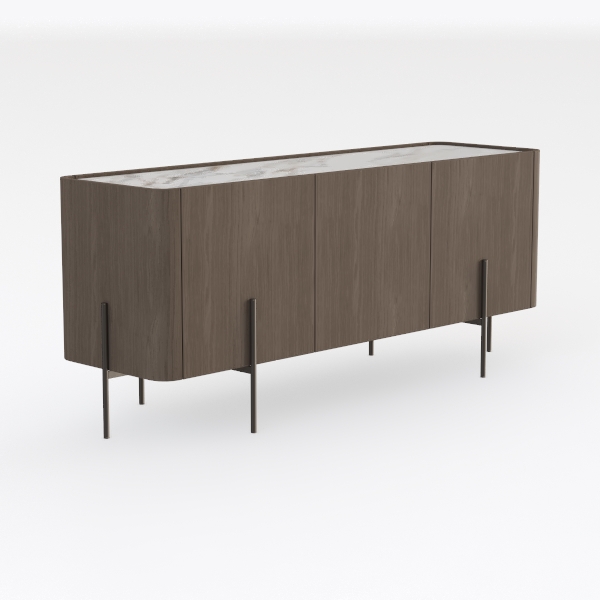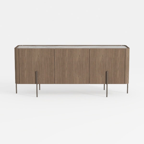 Inspired by natural wood grain and minimalist Scandinavian design, this cabinet features a smooth, warm wood surface with subtle grain, complemented by sleek metal legs. It suits modern living rooms, pairing well with marble-top coffee tables and warm-toned rugs, offering three spacious cabinets for ample storage with soft-closing doors for quiet use.
