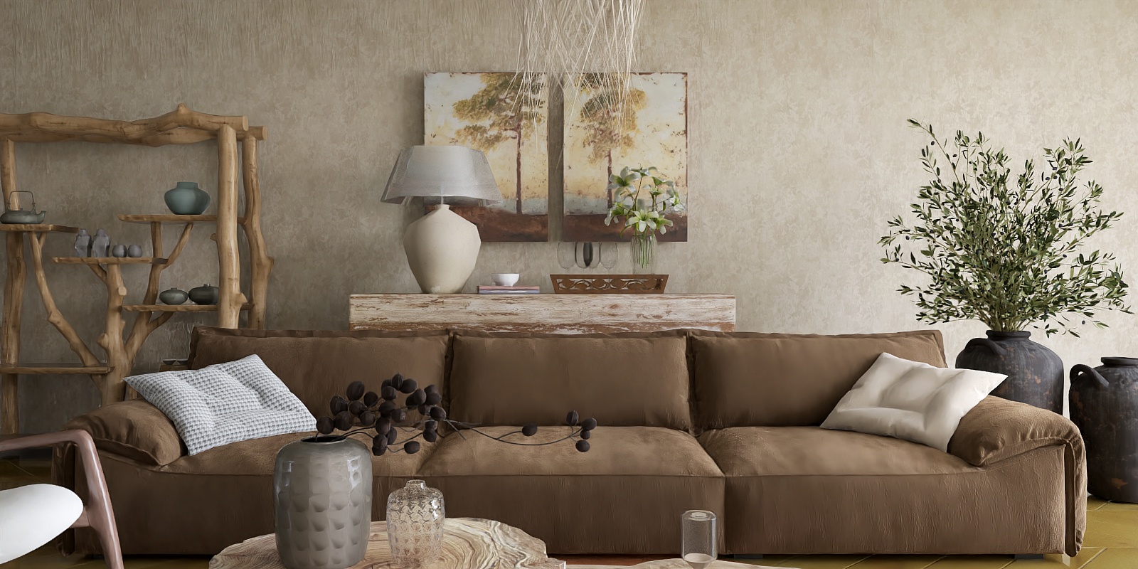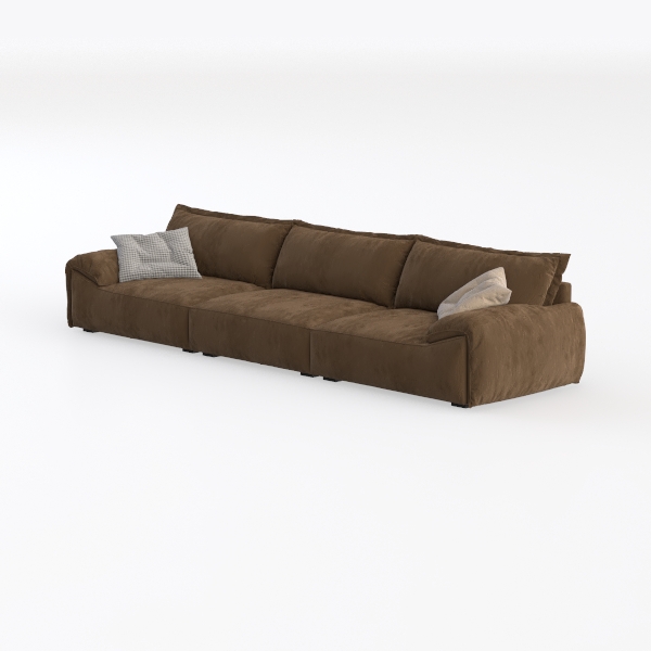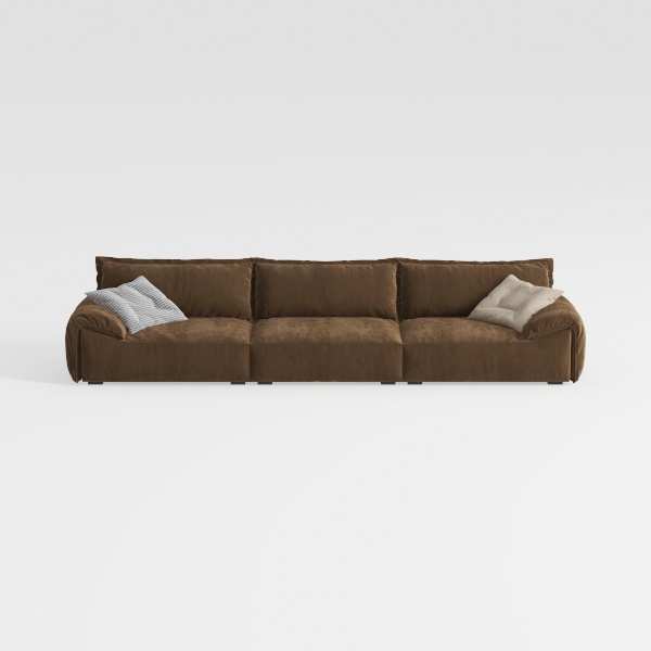 Inspired by the quiet beauty of natural textures and the pursuit of everyday comfort, this sofa blends Scandinavian simplicity with a tactile warmth that feels both timeless and inviting. The rich, terracotta-brown upholstery—woven from a soft, slightly fuzzy fabric—creates a gentle, inviting surface, its subtle sheen catching light to add depth without overwhelming. The three connected sections flow into one another, with gently rounded armrests and a low, grounded profile that feels expansive yet intimate, avoiding the stiffness of rigid designs.
