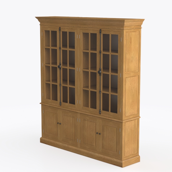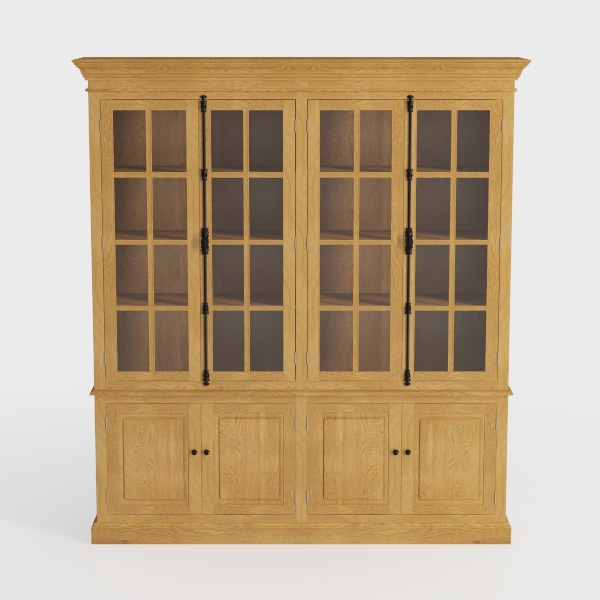 Inspired by traditional craftsmanship, this wooden cabinet features warm oak grain and light wood tone, exuding a natural, cozy vibe. Its glass-fronted upper shelves showcase collectibles, while solid lower cabinets offer hidden storage. Perfect for classic or Scandinavian living rooms, it pairs beautifully with leather sofas and vintage decor, blending functionality and timeless style.