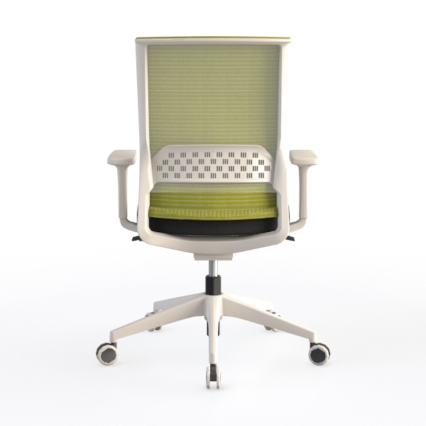 Designed with inspiration from the blend of minimalist aesthetics and ergonomic science, this chair features a lightweight white frame contrasting with breathable green mesh back, offering a cool, airy feel. Its smooth, contoured seat cushions add subtle comfort to the clean, modern look. Perfect for a sleek home office or modern study, blending seamlessly with minimalist, Scandinavian, or contemporary workspaces. Adjustable height and smooth-rolling casters ensure easy movement, while the mesh back promotes breathability and spinal support during long work hours.