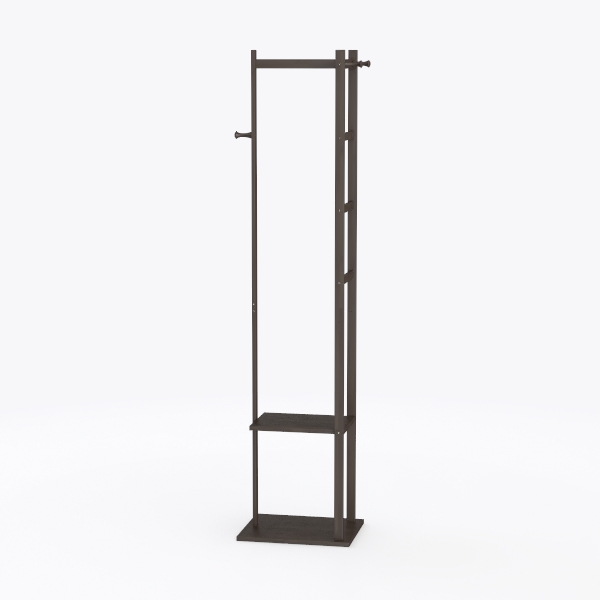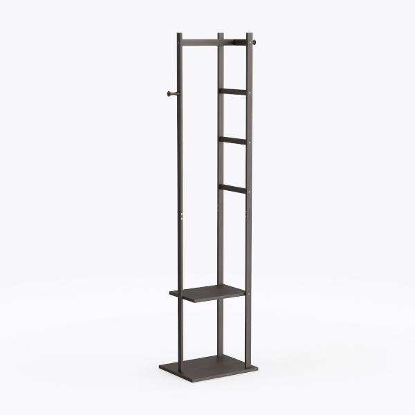 Inspired by minimalist industrial design, this freestanding organizer features a sleek metal frame. Its smooth, cool-to-the-touch surface and matte black finish offer a sharp, uncluttered visual. Ideal for entryways or bedrooms, it pairs beautifully with modern, Scandinavian, or industrial styles—wooden accents or soft textiles add warmth. Multiple hooks hold coats/bags; a lower shelf stores shoes/essentials, with a sturdy base ensuring stability.
