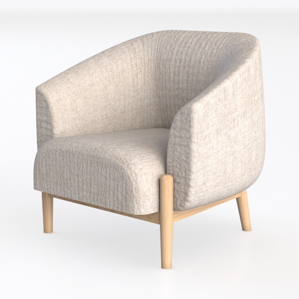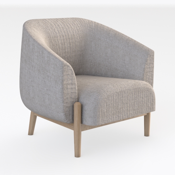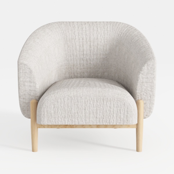 Crafted with a design inspired by the gentle, flowing curves of coastal driftwood, this armchair merges organic softness with modern simplicity. The textured light gray upholstery, with its subtle, evenly spaced weave, feels delightfully tactile—cool to the touch yet surprisingly resilient, as if woven from a blend of cotton and linen for breathability. Its wide, rounded back and shallow, curved arms cradle the body, while the natural oak legs, slim and tapered, add a light, airy foundation that keeps the piece feeling open and uncluttered.