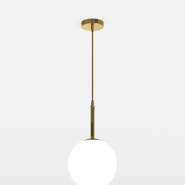 Modern Globe Pendant Light 1-Light Mid Century Chandelier Large 7.87” White Globe Glass Shade Brushed Brass Finished Hanging Light Fixture for Kitchen Island (Gold)