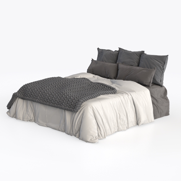 Inspired by minimalist Scandinavian design, this bed blends soft velvet pillows with a chunky knit throw, creating a cozy, tactile contrast against crisp white linens. Its neutral palette suits a serene modern bedroom, pairing beautifully with light wood furniture and subtle metallic accents. Plush, deep cushions offer exceptional comfort, ensuring a restful night’s sleep.