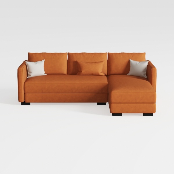 Blending organic warmth with contemporary elegance, this L-shaped sofa embodies a design philosophy rooted in balancing natural comfort and modern simplicity. Its rich terracotta hue draws inspiration from the soft glow of a sunset, infusing the space with a cozy yet sophisticated atmosphere—evoking the warmth of a well-loved living room that feels both inviting and intentional.
