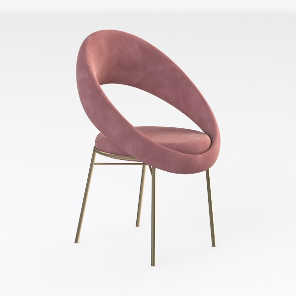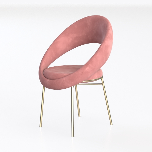 Inspired by flowing organic curves, this armchair boasts a soft, velvety pink upholstery that feels sumptuously smooth to the touch, its gentle hue casting a warm, inviting glow. Pair it with sleek marble tables and metallic lamp bases for a modern, elegant look—perfect for living rooms or dining nooks. The contoured back and sturdy gold legs ensure both style and lasting comfort during extended sits.