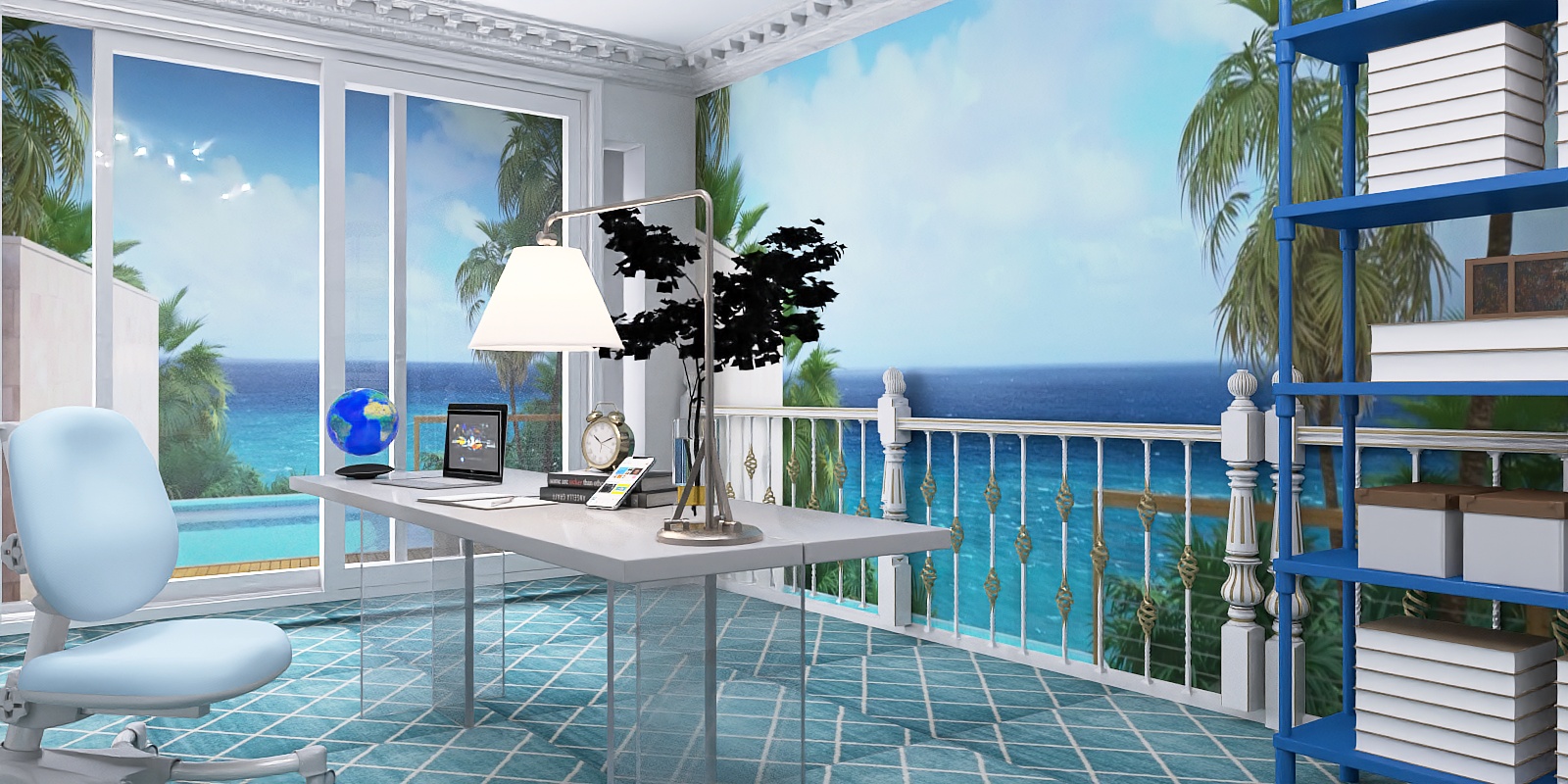 Inspired by modern minimalism, this chair features a soft light blue upholstery with a plush, comfortable touch. Its sleek silver base and smooth-rolling casters add a clean, airy vibe, perfect for a minimalist home office. Adjustable height and an ergonomic backrest ensure all-day comfort, ideal for pairing with a wooden desk and a contemporary lamp.