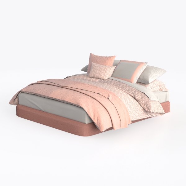 Inspired by soft dawn light and gentle botanical patterns, this bed blends blush and ivory textiles. The textured bedspread, with subtle leaf designs, feels luxuriously smooth, casting a warm, calming glow. Perfect for a serene Scandinavian or minimalist bedroom, pair with wooden nightstands and sheer curtains. Plush padding ensures excellent support, while the low-profile frame adds a clean, uncluttered look.