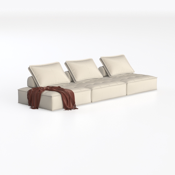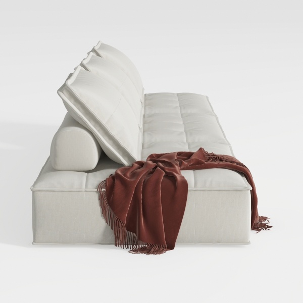 Crafted with a focus on timeless comfort and understated elegance, this piece draws inspiration from the quiet harmony of organic forms and minimalist design—where every curve and plane is thoughtfully balanced to feel both intentional and effortless. The upholstery, a soft, textured fabric in a warm ivory hue, invites gentle touch: velvety to the hand yet breathable, it catches and diffuses light, casting a soft glow that transforms the room into a serene retreat. A single, generously sized back cushion slopes gently, its relaxed angle encouraging casual leaning, while a rich terracotta throw with subtle fringe adds warmth, its earthy tone complementing the sofa’s softness without overshadowing it.