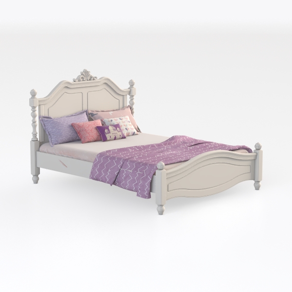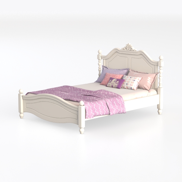 Inspired by classic European vintage design, this bed features a soft white wooden frame with delicate carved headboard details, exuding timeless elegance. Its smooth, matte texture feels warm to the touch, while gentle curves of the footboard add a touch of romance. Perfect for a cozy, retro bedroom, pair it with pastel cushions and lace bedding to enhance its soft charm. Sturdy structure ensures excellent support, making it ideal for a restful night’s sleep.