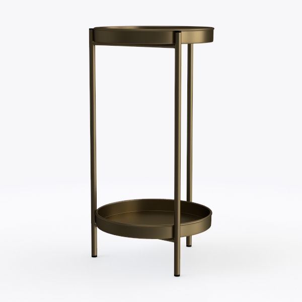 Crafted from mid-century modern charm and contemporary minimalism, this side table draws inspiration from streamlined classic silhouettes. Its matte brass finish exudes warm richness, with smooth metal surfaces offering a cool, solid touch, while slender legs create an airy, stable look. Perfect for modern-luxury, Scandinavian, or industrial living/bedrooms—ideal beside sofas or beds. Double-tiered design: upper for drinks/decor, lower for storage, blending style and practicality seamlessly.