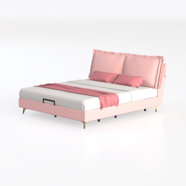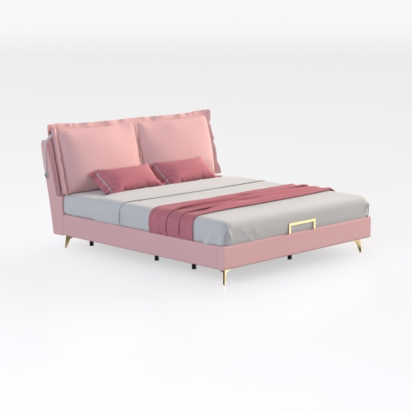 Inspired by soft, romantic aesthetics, blending gentle pink tones with clean, crisp lines for a cozy yet sophisticated vibe. The headboard, upholstered in smooth, plush fabric, offers a comforting touch, while sleek, thin metal legs add subtle, elegant contrast. Ideal for a modern, serene bedroom, it pairs beautifully with warm ambient lighting and minimalist wooden nightstands, enhancing a tranquil atmosphere. Adequate headboard height ensures relaxation, with a soft, light gray bedspread balancing the pink, creating a harmonious, inviting space.