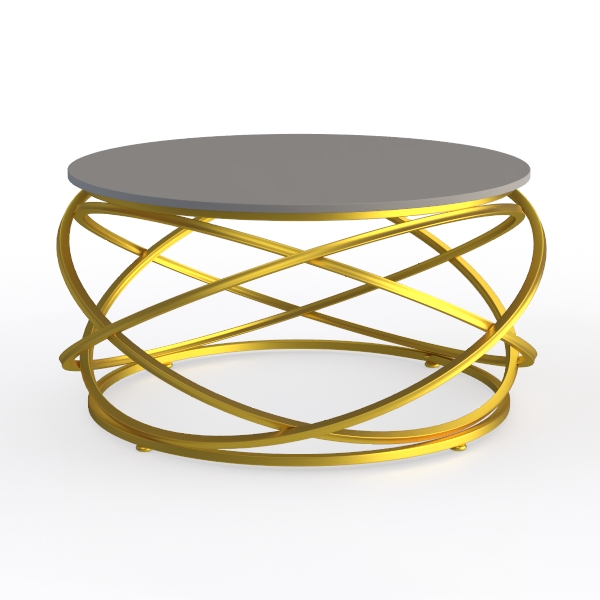 Inspired by architectural curves and minimalist art, this center table features a sleek gold metal frame with a smooth, polished finish. Intersecting lines create a light yet sturdy structure, while a cool gray marble-like top adds a neutral contrast. Ideal for modern, minimalist, or contemporary living rooms, it pairs seamlessly with neutral-toned sofas and metallic accents, offering a spacious surface to hold decor or daily items, balancing elegance with practicality.