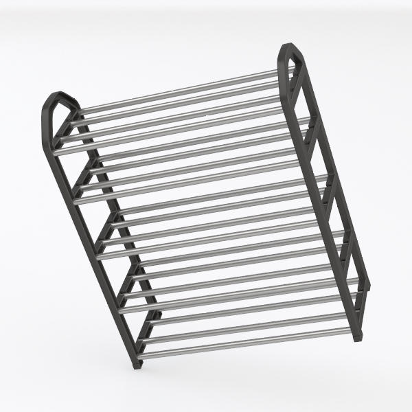 Inspired by minimalist living, this shoe rack features a sleek black frame with polished silver rods, blending matte and shiny textures for a modern look. It’s ideal for modern, Scandinavian, or industrial entryways, pairing well with wooden floors and neutral walls. Multiple tiers offer ample shoe storage, keeping spaces clutter-free with its compact, space-saving design.