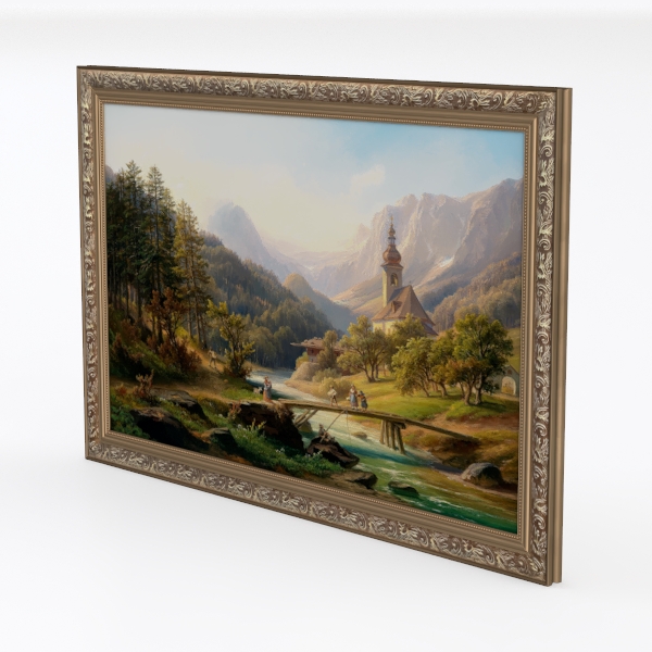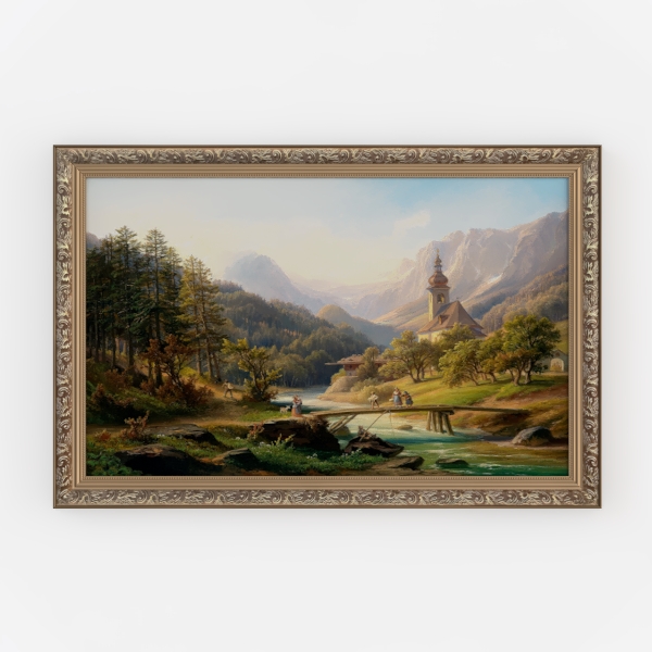 InSimSea Retro Gold Framed Wall Art, Home Room Riverside Small Town Vintage Wall Decor, Canvas Print Artwork, Farmhouse Country Decor, Antique Picture Frame Landscape Paintings, 13x16 Inch